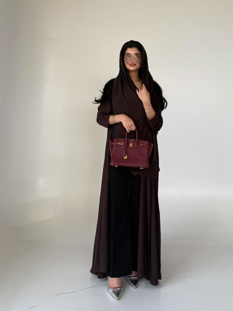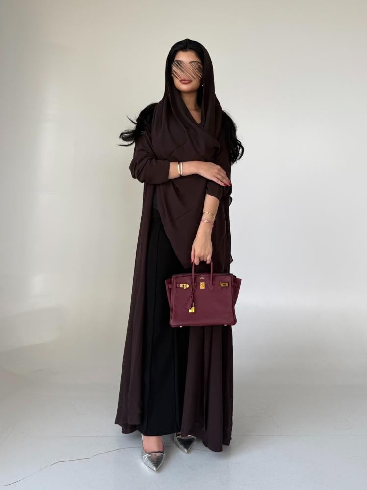 عبايه شيفون بني مبطن قصة كلوش