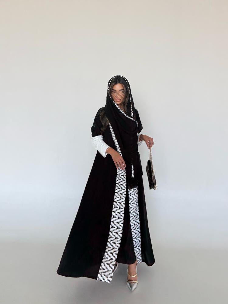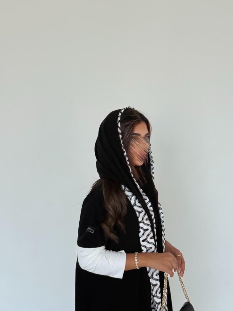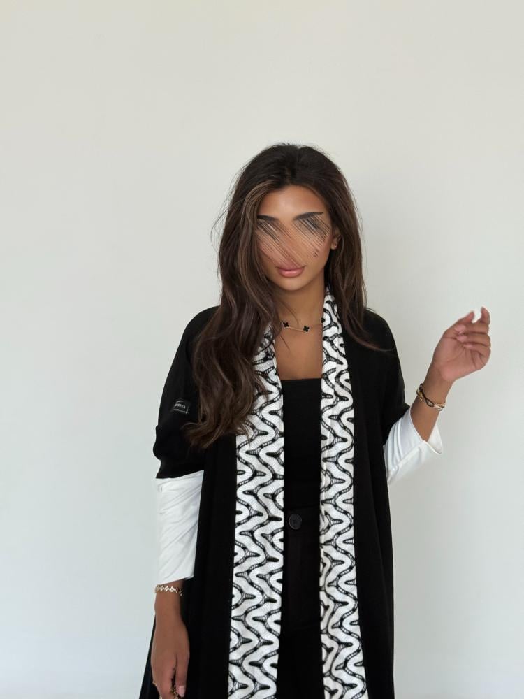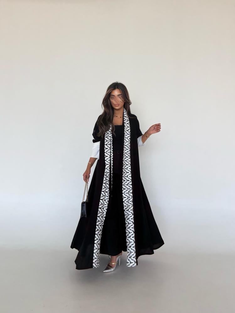 عبايه بقماش كريب كوري قصة كلوش باكمام استرتش بيضاء