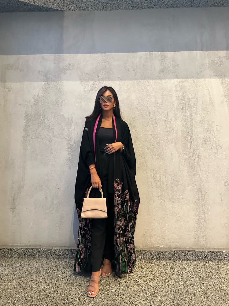 عباية قماش كريب ملكي مُطرز قصة نص بشت